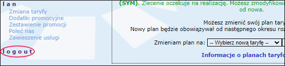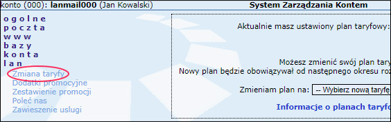 Po zalogowaniu się w systemie, z menu po lewej stronie, wybieramy zakładkę lan i opcję Zmiana taryfy: